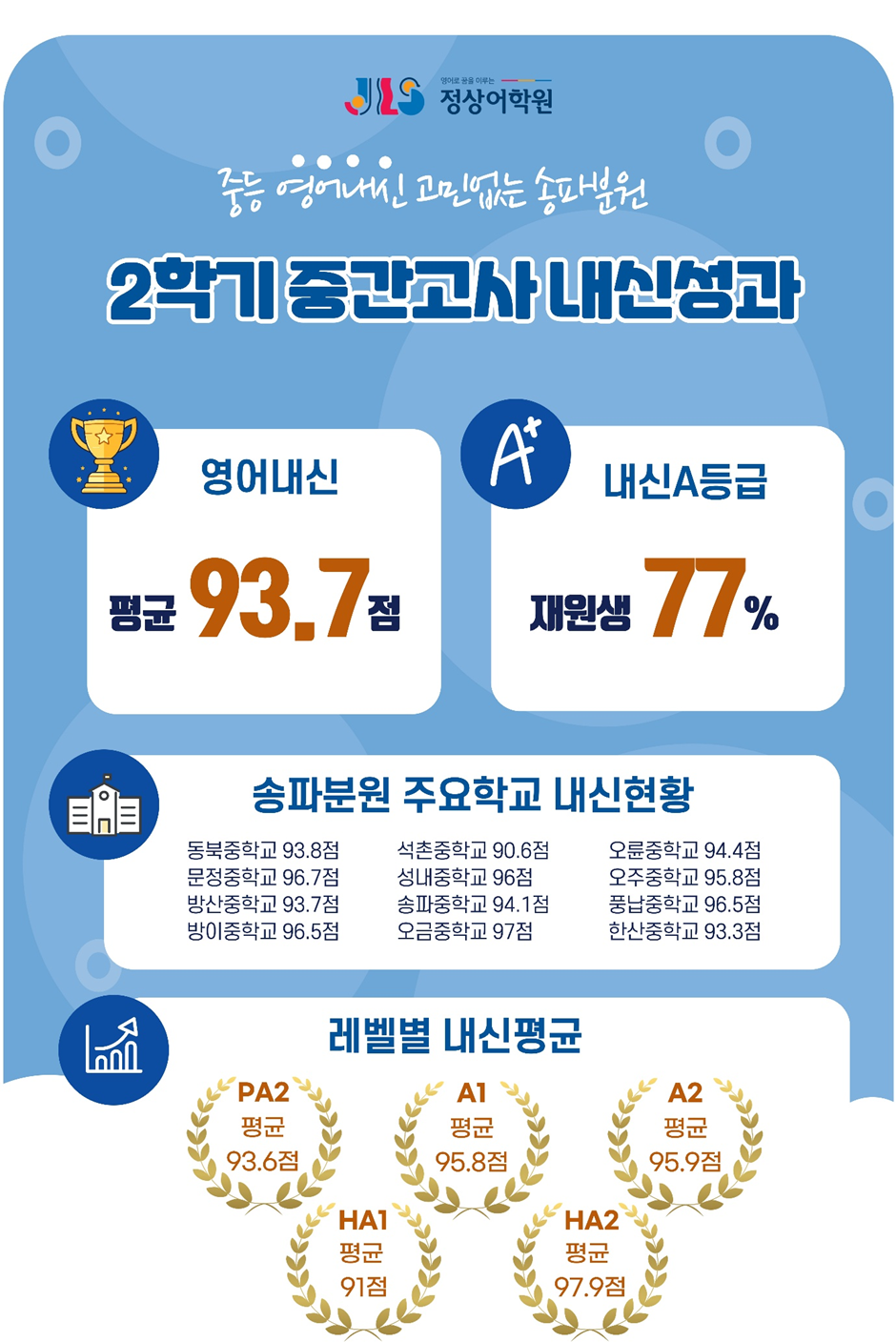 [송파영어학원] 압도적 성과 중등부 내신은 역시 송파정상어학원!