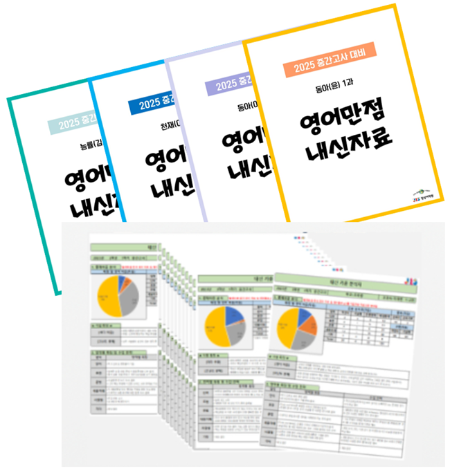 체계적인 내신교재 및 내신부교재 그리고 학교별 분석자료를 통한 맞춤형 밀착관리!