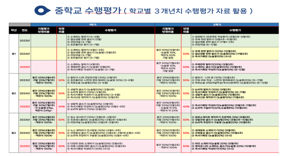 ✅ 영어 수행평가 비중 MAX 50%까지 학교도!