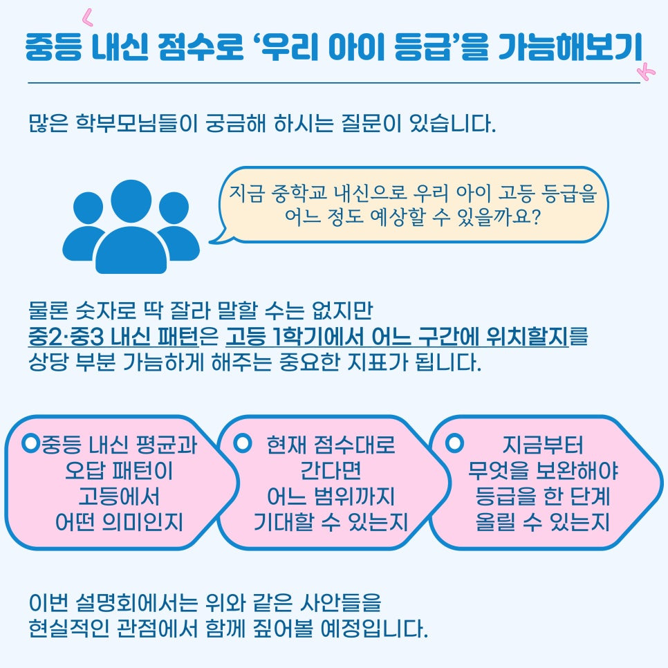 “지금 중학교 내신으로, 우리 아이 고등 등급을 어느 정도 예상할 수 있을까요?”