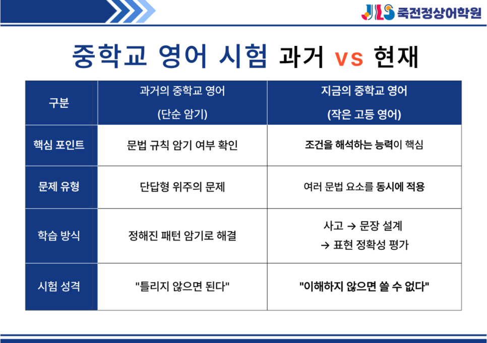 이제 중학교 영어 내신은 단순한 지식량이 아니라,