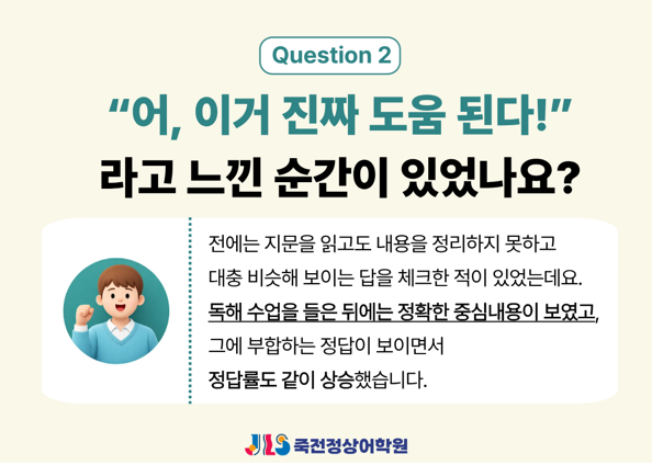 ➡️독해 중심 사고력 훈련과 실전 적용을 함께 지도합니다.
