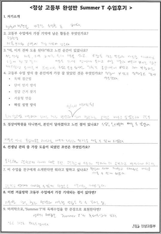 죽전고등부 수업을 두 달 간 듣고 작성한 수업후기입니다.