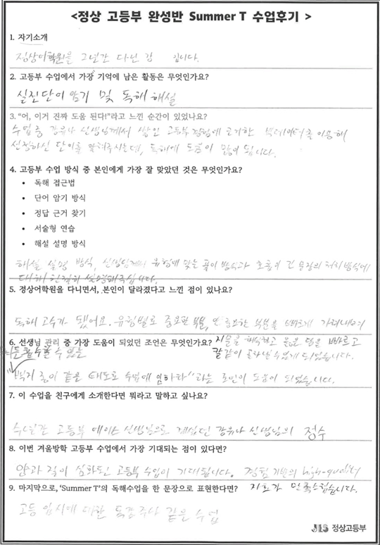 위 예비 고등학생들의 수강 후기에서도 확인할 수 있듯이,
