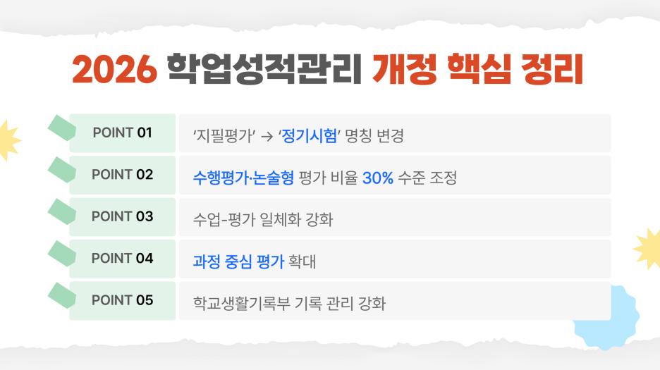 ✔ ‘지필평가’ → ‘정기시험’ 명칭 변경