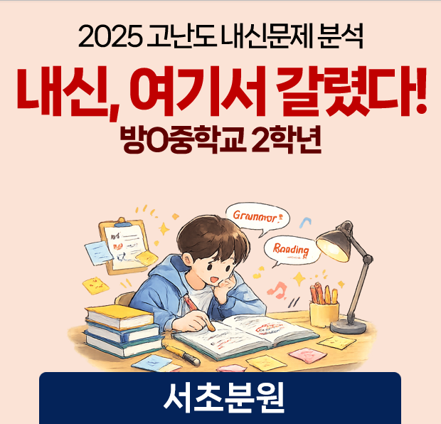 | [서초영어학원/반포영어학원]2025 내신, 여기서 갈렸다! 경O중학교 2학년 (0) | 2026.02.26 |