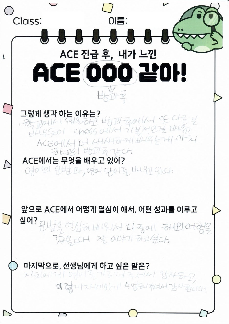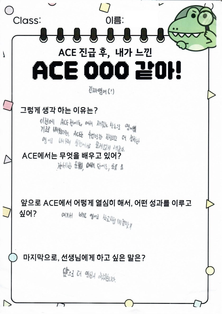 예비초6이 말하는 'ACE는 ○○○ 같아!'
