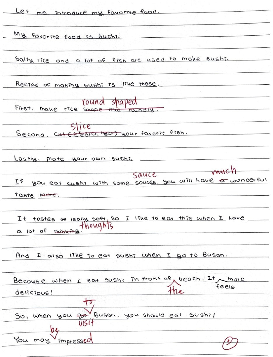또한 글쓰기 과정에서 문법과 표현을 함께 점검하기 때문에 내신 서술형 문제 대비에도 도움이 됩니다.