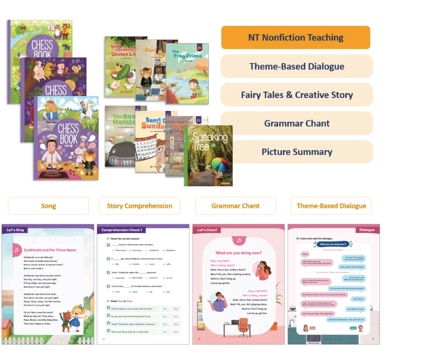 - Caramel Tree Readers (12 Storybooks)와 CHESSBOOK 1~6를 활용해 기초 리딩 스킬 강화.